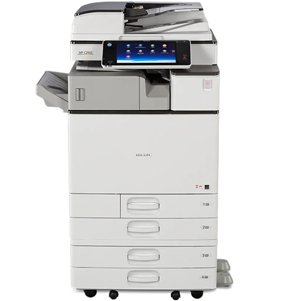 - Alimentatore di documenti da 100 fogli con fronte retro automatico.Ambienti di stampa mobile Apple AirPrint, Mopria®, Google Cloud Print, NFC, Ricoh Smart Device Connector